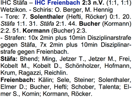 Der IHC Stäfa war sehr motiviert, übermotiviert phasenweise. Immer wieder waren Checks dabei, die Stöcke hoch oder unsere Stürmer wurden sonst regelwidrig gebremst. Das führte natürlich zu vielen